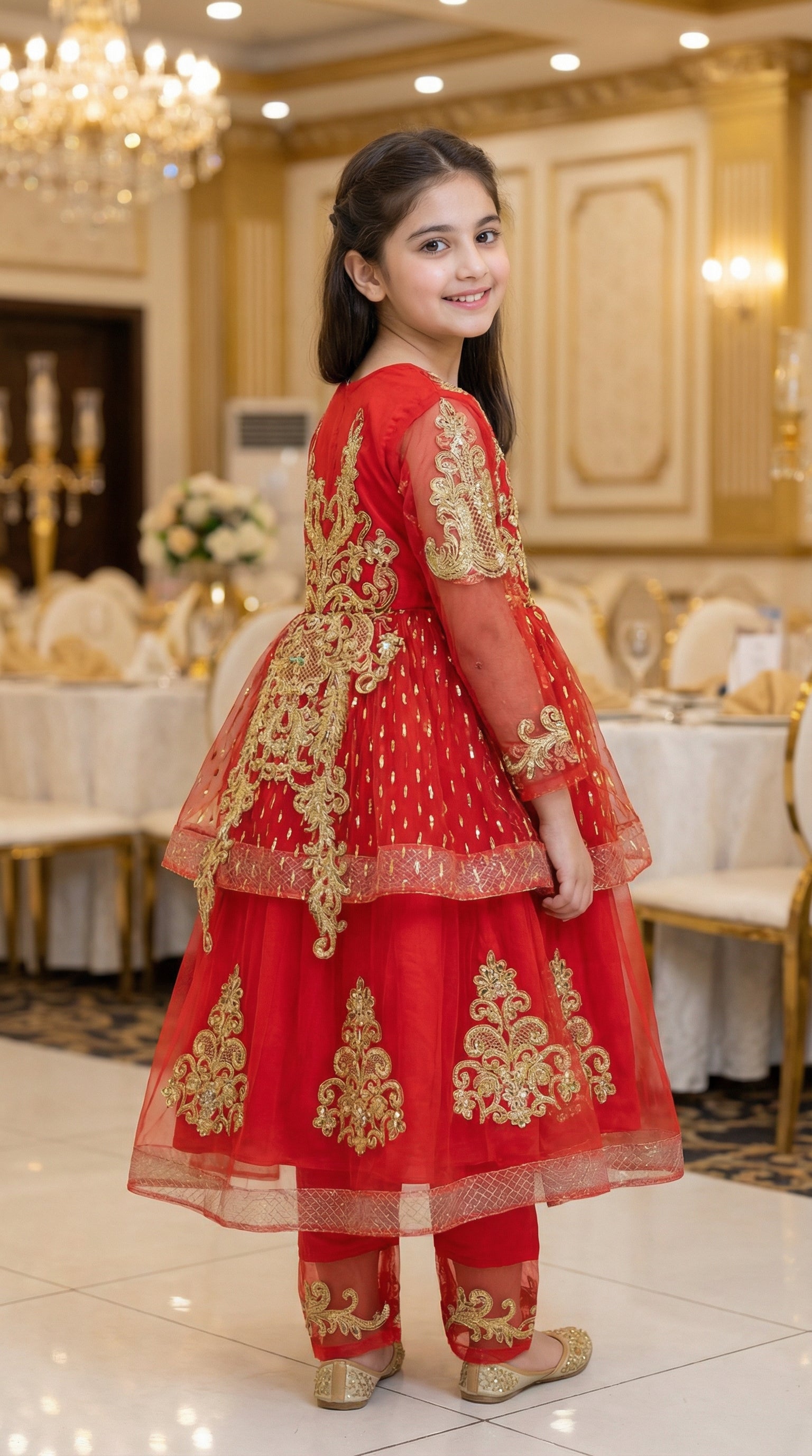 Exude timeless grace with our Royal Zari Frock, a masterpiece designed for grand celebrations. This ensemble combines the ethereal lightness of cotton chiffon with the regal structure of embroidered net, creating a high-contrast, luxurious look that is perfect for weddings, Eid, and formal festivities.